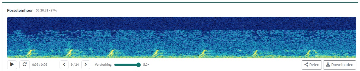 Iedere ochtend beluistert iemand van ons team de binnengekomen detecties van de voorgaande nacht. In de dagen na plaatsing van de nieuwe stations was het wederom bijzonder spannend om de geluidsbestanden te beluisteren, in afwachting van dat ene herkenbare geluid: de roep van het porseleinhoen.